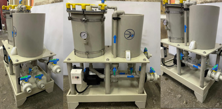 Cada filtro está equipado con platos de doble cara filtrante, cubiertas de polipropileno y motobomba con cabezal epóxico, lo que asegura una presión de trabajo estable (8.5 STP) y una filtración uniforme, reduciendo tiempos de parada y extendiendo la vida útil del sistema.