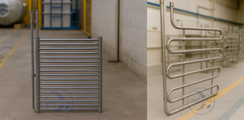 Ofrecemos configuraciones tipo parrilla, bota o helicoidal, según las especificaciones del proceso, con soldaduras reforzadas y acabados de precisión que aseguran máxima transferencia térmica y mínimo mantenimiento.